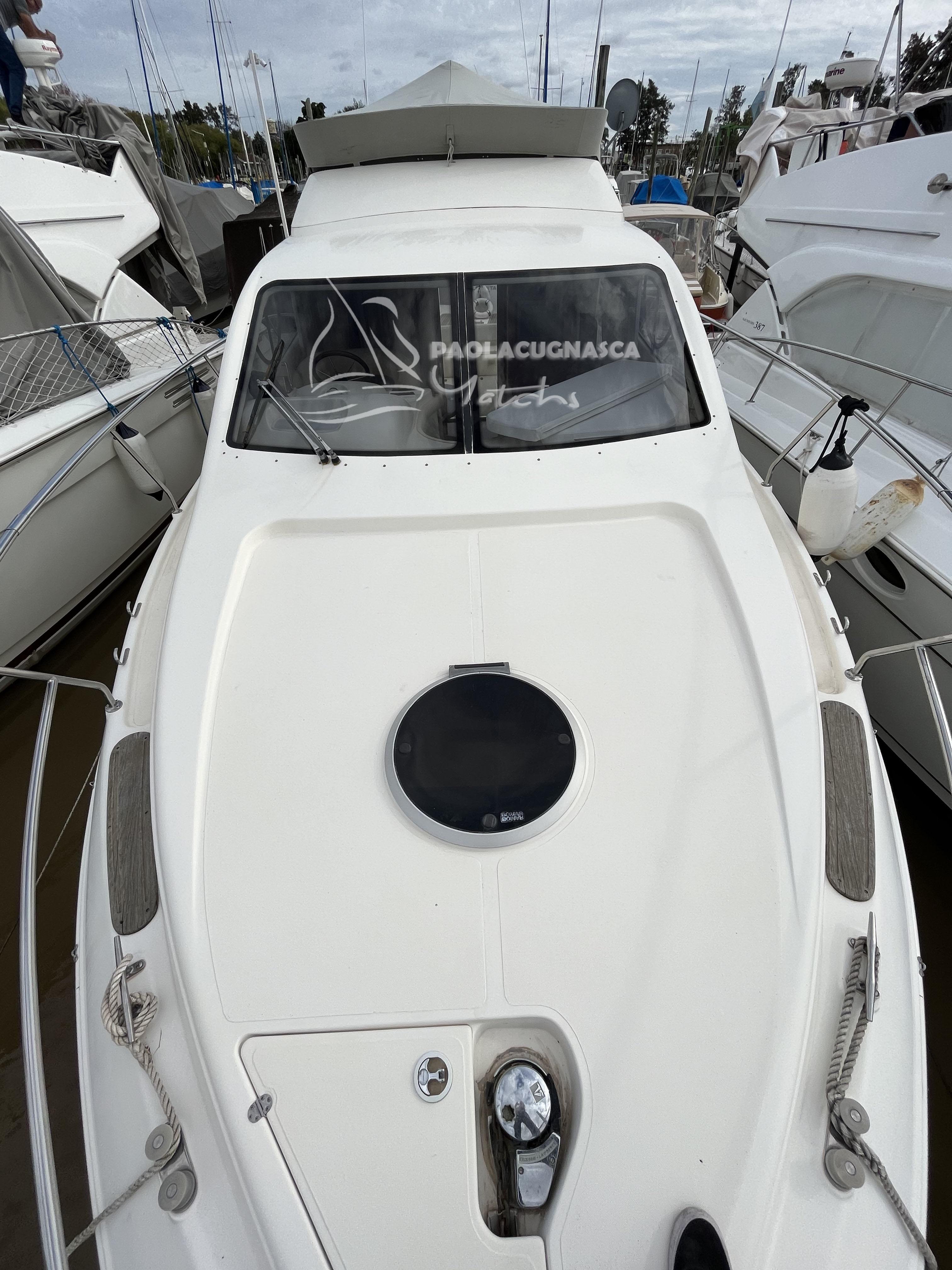 Amplio sector dinette, cocina espaciosa en desnivel, camarote 2 camas individuales a estribor, baño compartimentoado, camarote doble en proa, timonera interna. Fly muy cómodo.
